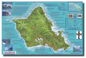 These maps are printed on a special waterproof and tear proof paper that can be abused and used in an near the ocean without harm to the maps. The initial series includes a dive map for Oahu, Maui, Hawaii and Kauai which can come either folded or laminated into a flat presentation piece. In addition there is an Oahu Surf Map that identifies and describes all of the major surfing spots on Oahu. The back side of this map includes a blow up of the north shore and the south shore of Oahu with better details. The back side of the Oahu Dive Map has the best map of Waikiki available anywhere.